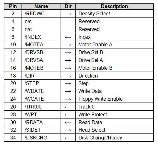 Otro pin que nos interesa es el perno de Dirección 18, 17 para la tierra. Perno de dirección determina qué dirección avanzar, o retroceder. Este movimiento es realmente la que causa el sonido de la nota de bajo y alto que sale de la unidad de disquete.