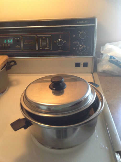 Pon la maceta más grande con agua sobre la estufa y el bote más pequeño en la olla grande que flota en el agua.