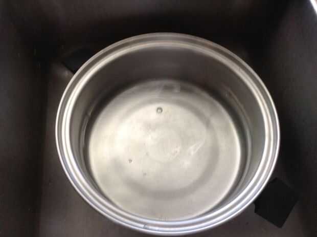 Añadir agua a la maceta más grande hasta la mitad de la olla.