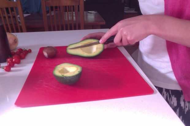 Sacar con pala hacia fuera dentro del aguacate y luego agregar en un tazón. Se puede obtener un tenedor y sólo puré un poco, mi aguacate estaba bastante duro pero si hey son más suave que se mush mucho más fácilmente que en el resto de ingredientes.