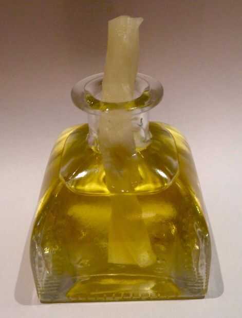 Para hacer la lámpara de aceite que necesita algún tipo de recipiente resistente al calor, ininflamables para mantener el aceite. Prefiero el vidrio como se puede ver cuánto aceite es en él y por tener un cuello estrecho es más fácil apoyar la mecha. Para el combustible usado barato aceite de colza, pero cualquier aceite de cocina funciona. Las grasas funcionan pero son más difíciles de usar, tienes que derretir la grasa para entrar en el recipiente y coloque la mecha. Para hacer una mecha tomé un pañuelo de papel y laminados en forma de tubo. Torcerlo ayuda a mantener unida a la mecha. Antes de que luz la mecha es mejor dejar que es remojar durante un rato.