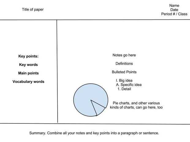 El formato de notas de Cornell fue creado en la década de 1950 por Walter Pauk, que era, por supuesto, un profesor de Cornell. El sistema proporciona y formato ordenado para tomar y resumir notas en clase. El sistema, en su más básico, cuenta con 2 columnas y 3 filas que crean 4 secciones, con una guía específica para lo que va en cada una.
