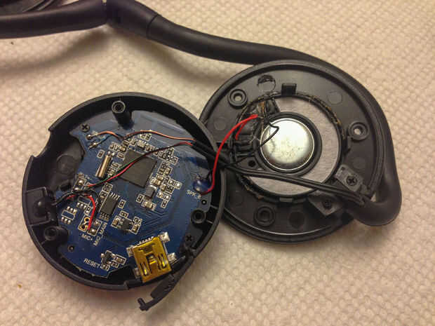 A continuación, desmonte los auriculares. Mina tenía pequeños tornillos de phillips que sujetan la banda juntos y los tornillos tri-wing mantiene los teléfonos juntos. Por qué esta empresa pensó que era importante para mantener a la gente abrir los auriculares que compró, no sé. Un poco de seguridad destornillador como ésta o ésta es una cosa útil para tener a mano de todos modos. (Si no tienes un conjunto y están con ganas de abrir los auriculares, puede simplemente usar una herramienta giratoria para moler a través de los puestos de tres tornillo.)