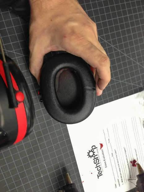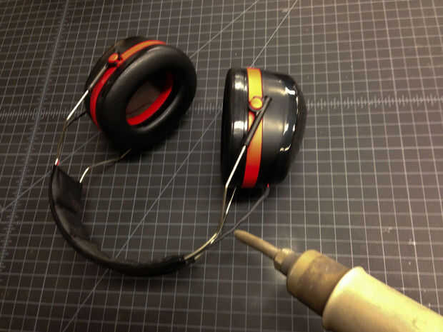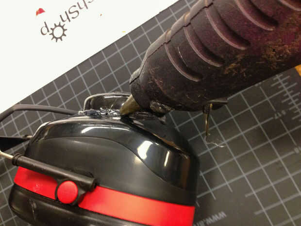 Ahora completa los huecos con una pistola de pegamento (si había conoce sobre soldador plástico de TechShop habría utilizado el plástico extra de la banda de los auriculares y en su lugar).