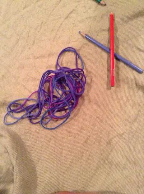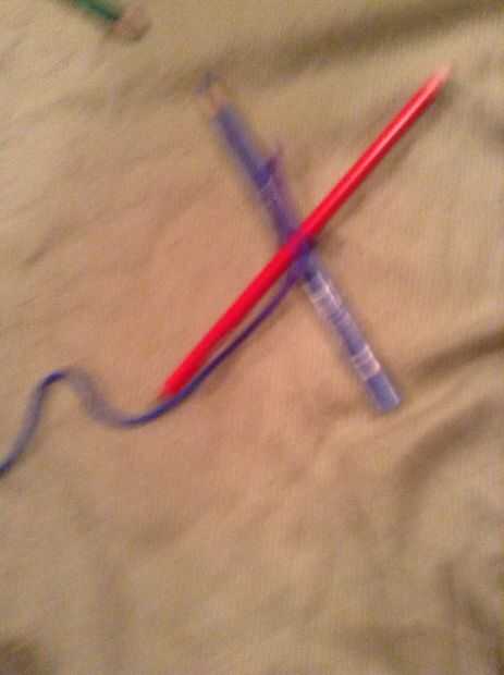 Cruzar los lápices y cortar una tira larga de hilo. Entonces haga un nudo sobre la lápices y envuelva que el hilo como y X en el medio el lápiz cross para mantener luego juntos.