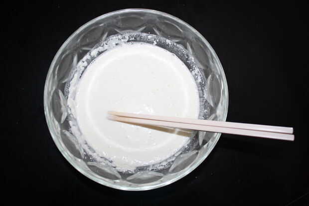 3) mezclar hasta obtener una consistencia acuosa.