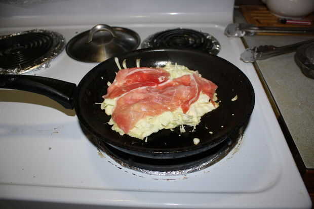 4) añadir las rebanadas de carne de cerdo en la parte superior