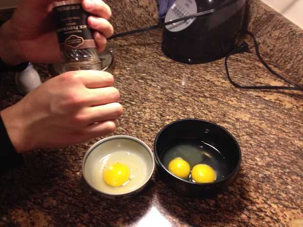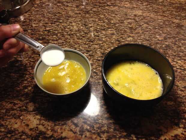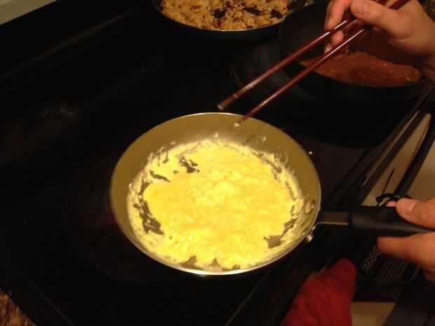 4. golpear a otros dos huevos y les cuece al horno con poco calor hasta que se medio cocido.