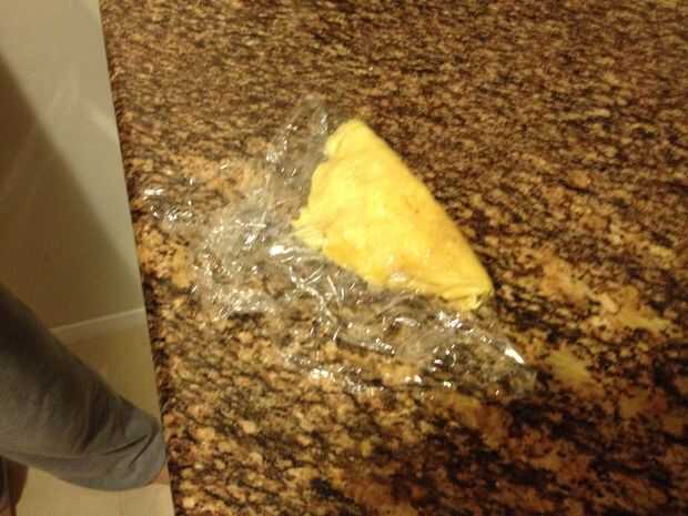 6. doblar la envoltura y cubrir el interior con huevo duro.