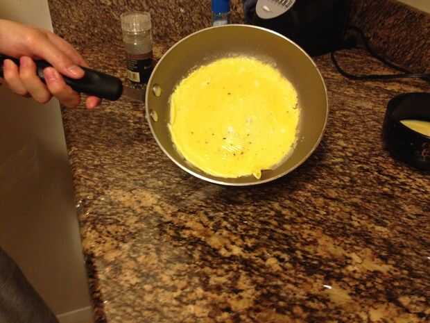2. difundir el huevo batido en el molde y hornear hasta que se ponga duro.