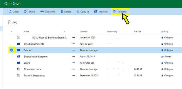 1. Puedes renombrar un archivo o carpeta, seleccione el elemento que desea cambiar el nombre y haga clic en 'cambiar nombre' en la parte superior de la página.
