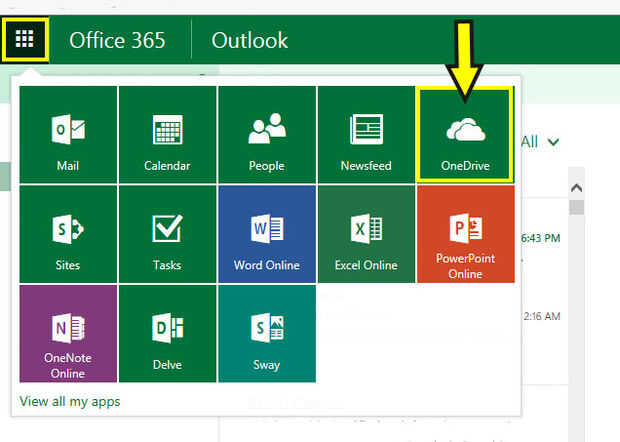 2. el panel de la aplicación se abrirá y podrás acceder a tu aplicación OneDrive clic en el icono de OneDrive .
