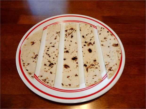 Para evitar que se pegue las orejas de elefante, rocíe aerosol de cocina en toda placa.  Luego, coloque las tiras de tortilla en la placa de paralelas a una otra.  Deje un pequeño espacio entre cada tira.  Usted debe ser capaz de encajar todas las tiras de tortilla en el plato.