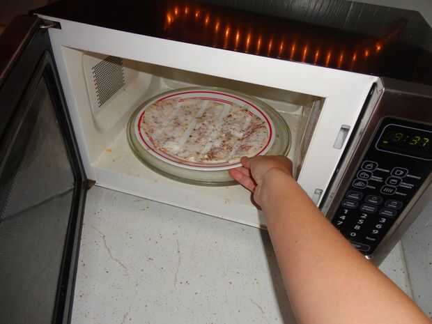 Tomar la placa con las tiras de la cubierta y coloque en el centro del microondas.