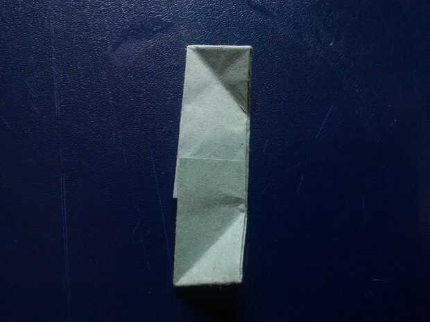 •Asegúrese 2 pliegues diagonales como se muestra. Pliegues bien y despliegue.