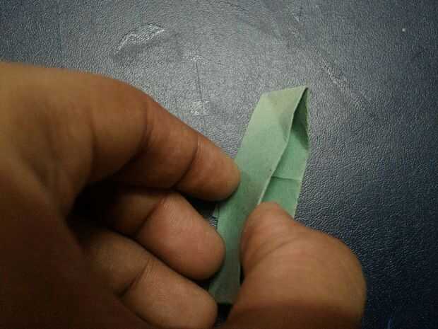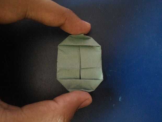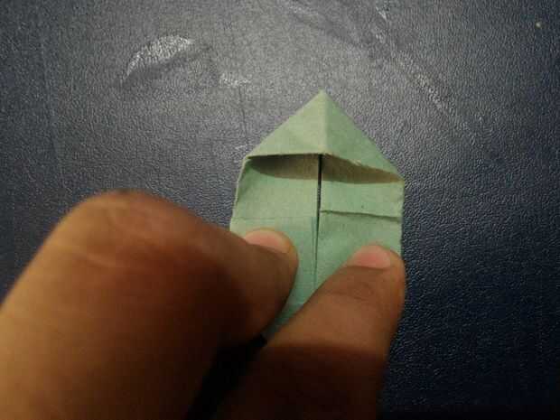 •Le está ahora va a abrir el libro y traer la capa superior a la izquierda. •Presione papel plano para formar un triángulo en la parte superior e inferior. •Asegúrese 2 dobleces de valle pequeño superiores y hacia abajo