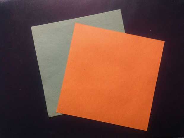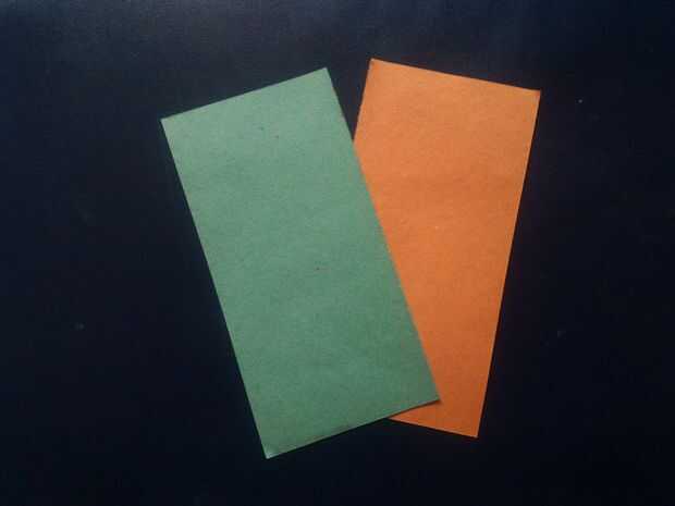 Paso 1] comienzo cortando un papel de origami cuadrado de 6 pulgadas x 6 pulgadas (15 cm x 15 cm) de tamaño regular en dos. Usaremos ambas mitades del papel como el origami consiste en papel de color 2.
