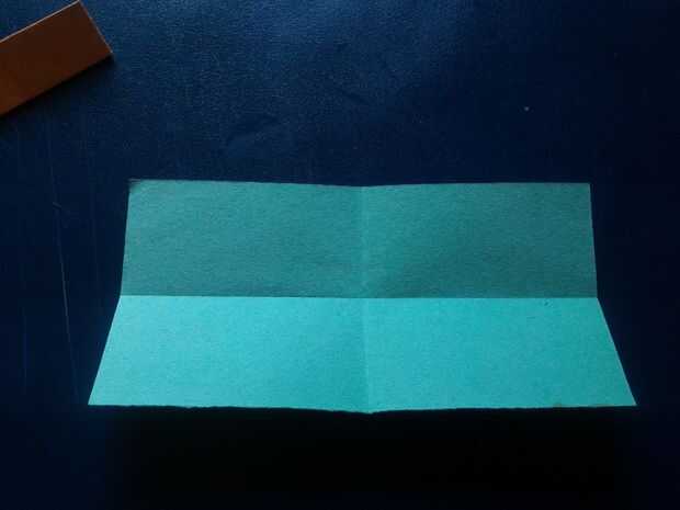 Comenzar con la otra mitad del papel. Dobla el papel por la mitad en el eje horizontal y vertical. Pliegues bien y despliegue.