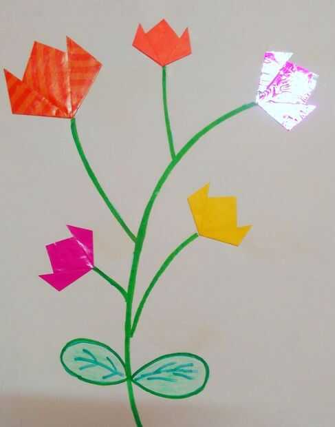 Aquí es un origami muy fácil Lotus que se puede hacer por niños muy pequeños ellos mismos. Puede decorar después de completar el trabajo plegable y pegar en su libreta de dibujo.