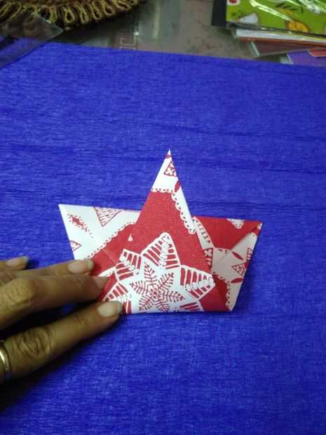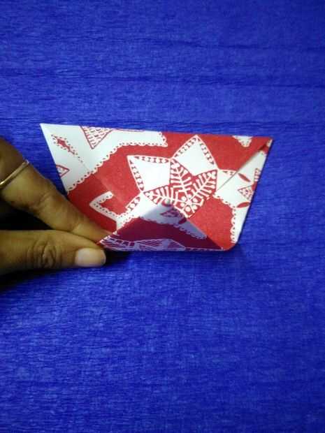 5. Enrolle cuidadosamente el derecho y los triángulos de la izquierda se superponen.