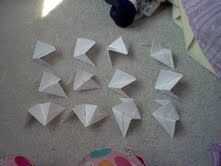Primero descubrí la forma de octaedro estrellado cuando sólo al azar me conexión de módulos de cubos de origami. Cumplí esta forma en estos pequeños colgantes. Después de hacer esto, yo seguí doblando octaedros estrellados, simplemente porque me enca