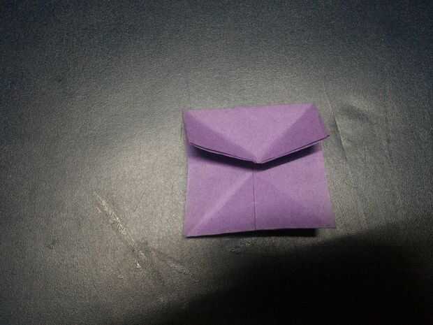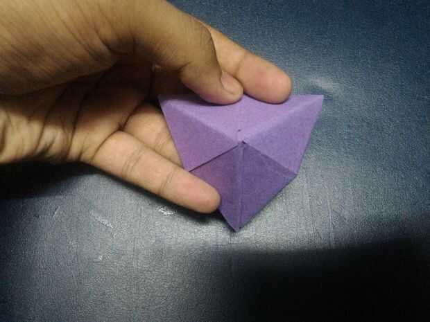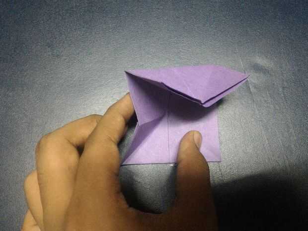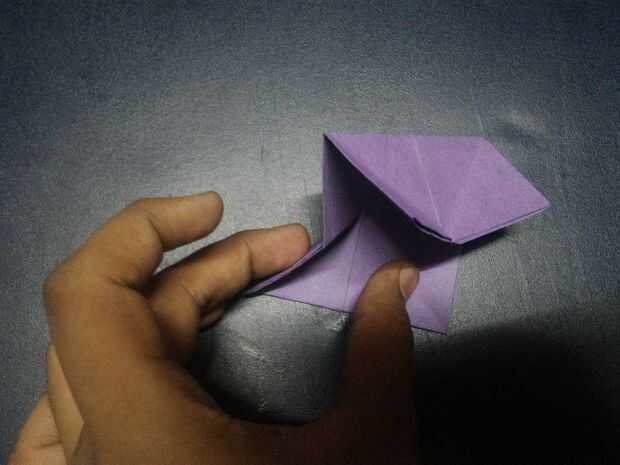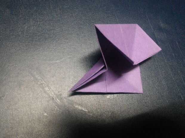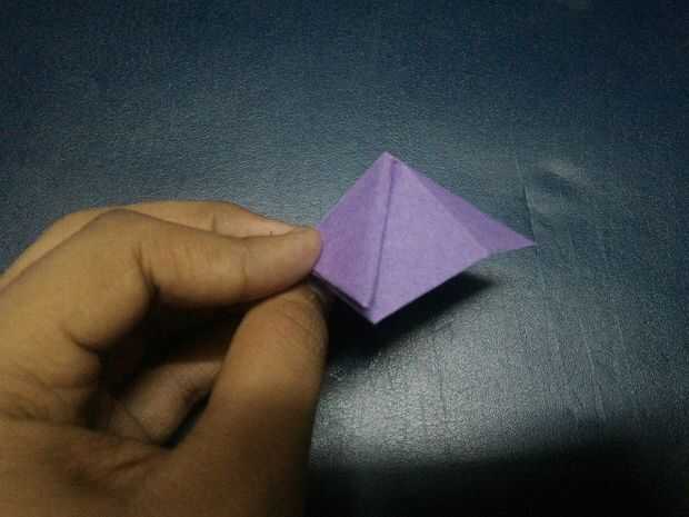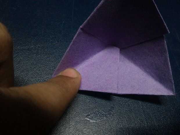 Doble triángulo bajo capa delantera así que usted de una pirámide de la forma y doblarlas (hacer como expresamente de forma como de pirámide.