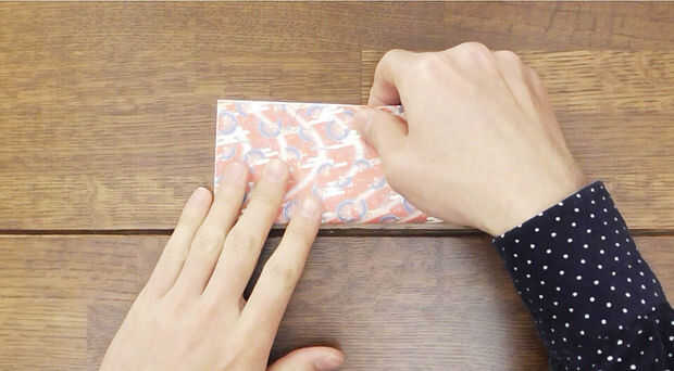 Blanco lado hacia arriba, dobla el papel por la mitad.