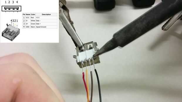 -Aquí es un esquema simple de un cable USB que te muestra el orden correcto de las patillas y el color por defecto de cada pin.