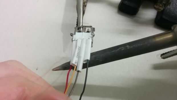 -Después de terminar con soldadura poner unos tubos de calefacción alrededor de las conexiones y asegúrese de que encajen firmemente alrededor del cable.