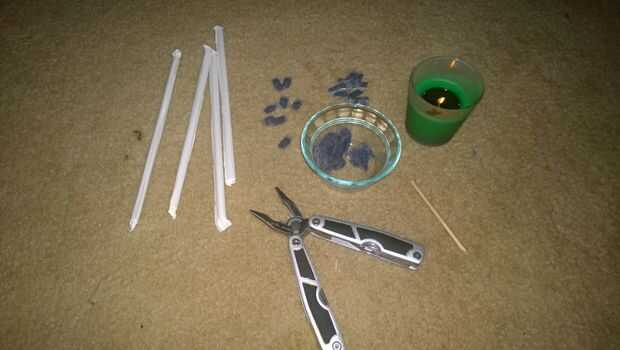 Se muestra cómo hacer un simple envase impermeable sellando los extremos de una pajita para contener todo lo que está dentro. Sellado de las pajuelas es bastante sencillo; los extremos de la paja se llevan a cabo con los alicates de nariz de aguja un