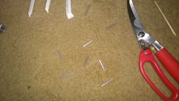 usted necesitará una regla, tijeras, pajitas, bomba de bicicleta, aletas y pistola de pegamento caliente(lo sentimos no hay pic de aletas, bomba y pistola encoladora vienen más tarde)Paso 1: paso 1 usted tendrá que cortar sus pajas en 6 a 8 cm de lar
