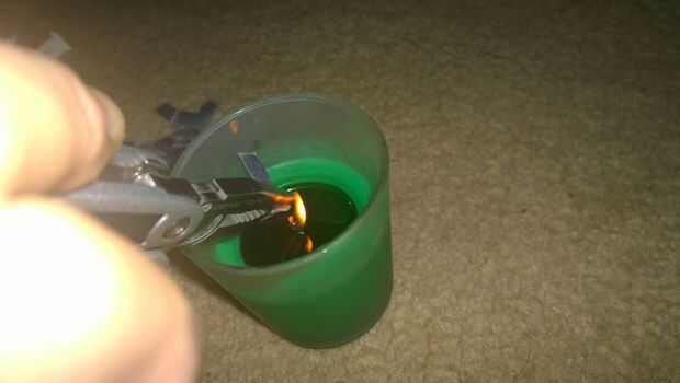 6. Otra vez, sostenga el extremo corto a la llama. Debido al desinfectante de la mano, podría iluminar todo el asunto y si lo hace, lo saca de la llama y de golpe la llama. Calor sellar el extremo abierto otra vez si es necesario.