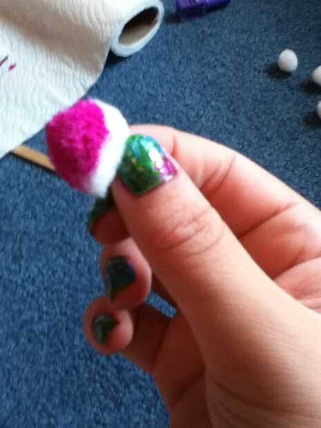 Abrir uno de sus 5 colores y palillo una de las bolas de algodón en la botella o sólo usted podría pintar en