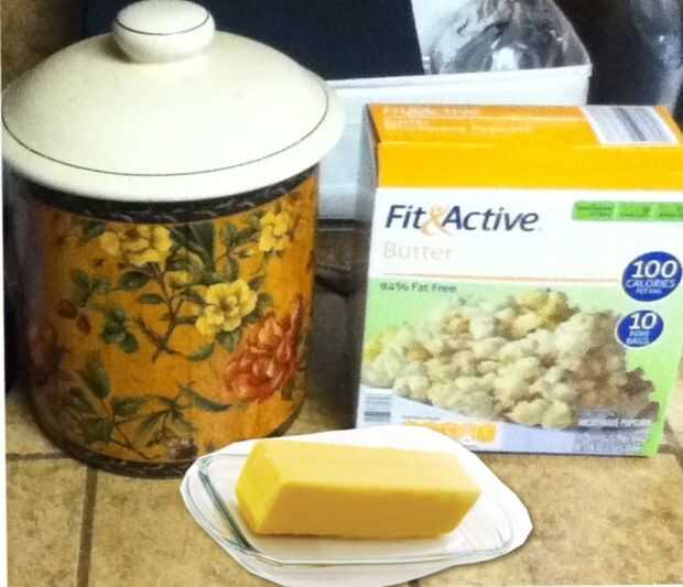 1 C. de azúcar morena (azúcar blanca si te gusta la tuya más mantequilla) 1 barra de mantequilla (8 Tb.) 2 bolsas de palomitas de microondas de personas en el estado de ánimo para un bocado!
