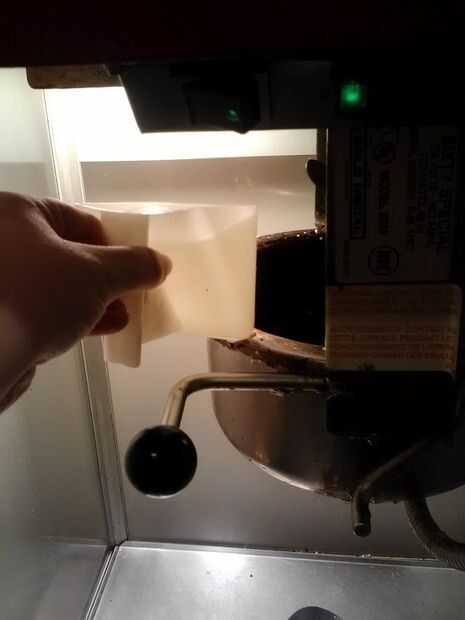 * Nota: Asegúrese de que está girando el tubo situado en la parte inferior de la caldera. Si no lo es, agarrar un DC. Si no es girando la varilla, luego las palomitas se atascará probablemente en el hervidor de agua y quemaduras
