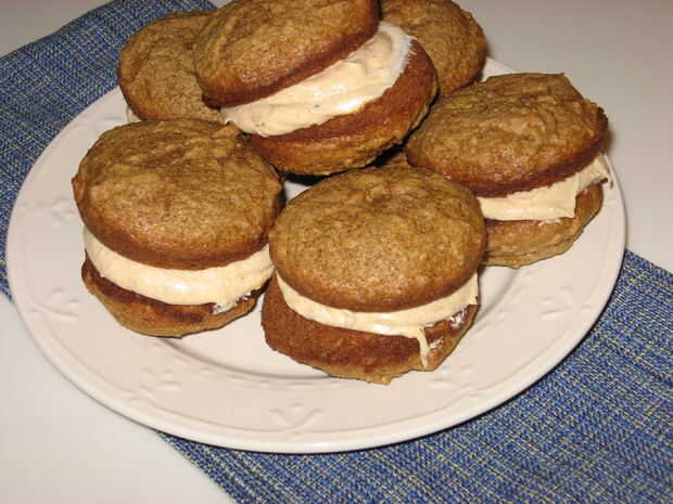 ¿Calabaza especia Whoopie Pies con Frosting de queso crema de canela