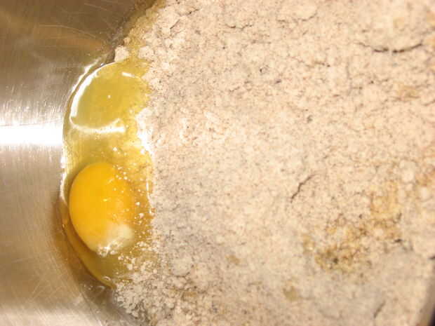 Carck abierto el huevo añadir a la taza. Mida 1 4 taza de agua tibia y añadir también.