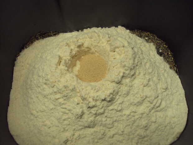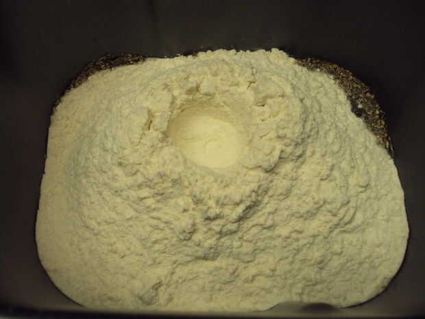 Antes de añadir la levadura, utilice un dedo para formar un pozo o la impresión de la harina de un lugar para verter la levadura. Levadura debe nunca contacto el líquido cuando se agregan los ingredientes. Una vez que haga el bien, vierta suavemente la levadura en ella. Cuidadosamente levante la bandeja y coloque en la panificadora.