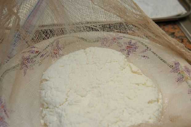 Enfriar durante la noche con más peso en él si lo deseas lo suficientemente firme para rebanada sin miedo total crumble-ización. Aunque enfriarlo bien, no esperes que no se desmoronan un poco, ya que no utiliza ningún estabilizador. Esta es la naturaleza de los quesos de estilo "cottage".