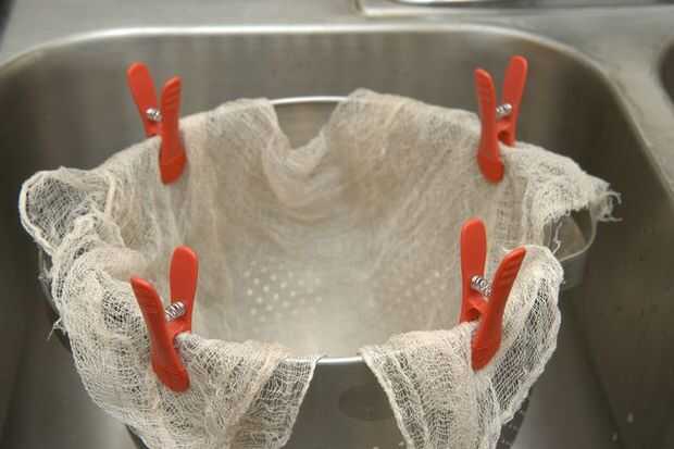 Paso 2: Línea de un colador con el paño de queso.