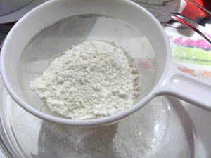 Tamice la harina y sal en un recipiente con un colador en alto por encima de la taza para que la harina tenga un respiradero.