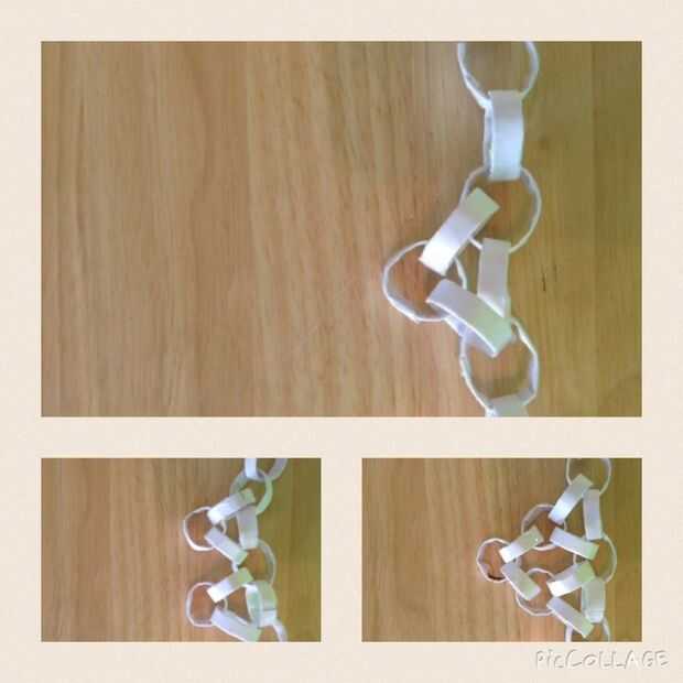 El patrón que conecta las filas es más fácil de lo que parece. Las fotos de arriba muestran todo el proceso paso a paso. Al realizar este patrón alrededor del círculo entero, se forma un nuevo conjunto de anillos. Luego puede usar esos anillos para aprovechar para la siguiente fila. continuar haciendo esto hasta que todo se extiende desde un poco por debajo la cintura al pecho.