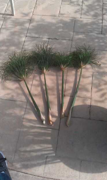 Antes de que se cosechan los tallos, recomiendo dar la planta un buen remojo previo unos 60 minutos. Esto se asegurará de que los tallos son firmes y no arrugamos. Intente cortar tan cerca de la base como sea posible. Cuánto usted cosecha es de ti y de lo grande de un pedazo de papel que usted quiere hacer. Ya estaba pensando en hacer una pequeña hoja, imaginé que los 4 tallos más grande sería suficiente. Cortar las tapas.