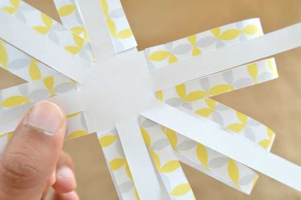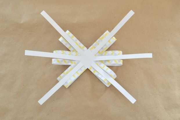 Levante el filamento central y doble filamento doble hacia el centro y pegar como se muestra. Lo mismo para todas las tendencias. Aplicar 2 a 3 trozos de cinta adhesiva al centro y doblar todos los filamentos del mediados hacia el centro. Ahora tome el pedazo de rectángulo y pegan los extremos y cinta adhesiva en el centro o un círculo al centro de la cinta. El arco es completo. Como decía anteriormente, obtendrá este arco particular de la plantilla 1 para retrato.