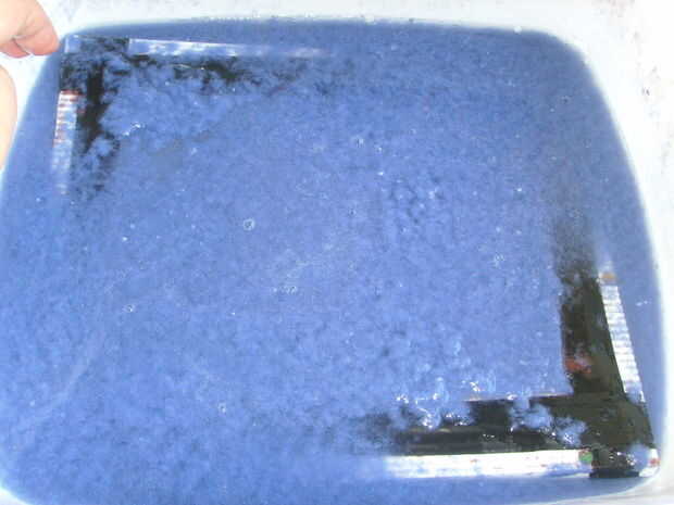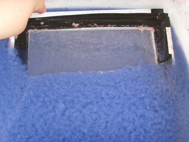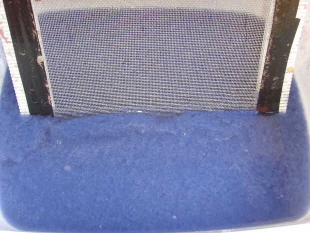8. Sumerja el molde completamente en la pulpa, luego levantar el molde. (con este tipo de molde que hice no necesita una etiqueta porque la pulpa extra en los lados no se deslice)