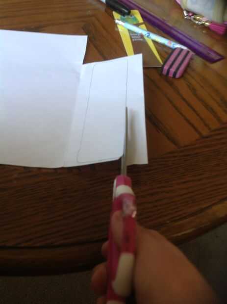 Tome su marca de libro y coloque en el papel en blanco para trazar y si no tienes una marca libro de usted puede apenas sacar el tamaño que desee. Hacerlo con un lápiz. Cuando hayas terminado esto vas para cortar hacia fuera.
