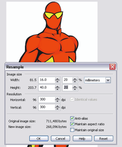 Ajuste la resolución a 300 dpi (puntos por pulgada) y luego 'reducir' la altura de la imagen a su escala solicitada. Lo más comúnmente posible que ocurren escalas son 25mm y 28mm.