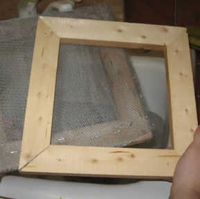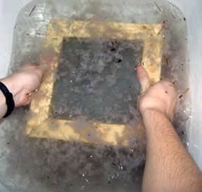Entonces es hora de utilizar el barbas y el molde. Colocarlos en el agua con el molde en la parte inferior (lado de la pantalla hacia arriba) y el barbas en la parte superior.