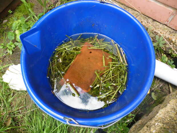 Empuje bajo el agua, luego dejarlo por una semana (si los tallos son muy boyantes, necesitan empujar hacia atrás bajo el agua de vez en cuando). No hay necesidad de perder este tiempo, sin embargo, gastarlo haciendo su equipo de fabricación de papel.