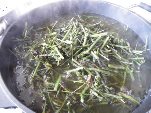 Cocer a fuego lento los tallos alrededor de media hora (tal vez deba reponer el agua de vez en cuando).